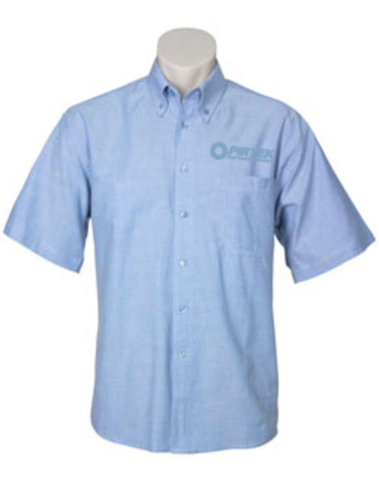 Short sleeve poly cotton blend oxford shirt, available in sky blue