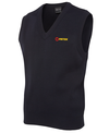 Wool blend navy vest for warmth and easy care, with long sleeves and a classic fit