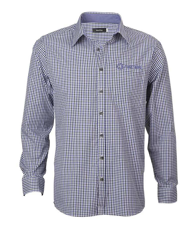 60% Cotton 40% Polyester, Yarn dyed two tone fabric, Contrast fabric details, Total horn buttons