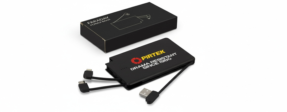 This 5,000mAh power bank is equipped with built-in charging cables a twin Micro-B/Lightning cable, and a Type-C cable, allowing two devices to be charged at the same time. The Faraday power bank also features an LED power gauge and is presented in a black gift box.
