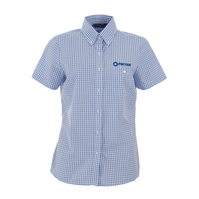 60% Cotton 40% Polyester, Yarn dyed gingham check, button down collar, roll up sleeve tab, pearl buttons
