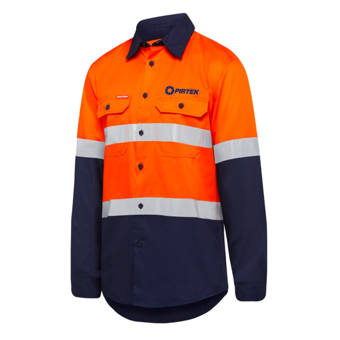 Taped L/S Hi-Vis Drill Shirt - Org/Navy